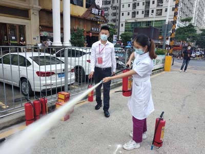 在演練開始時,鐵保宏泰保安公司消防教練為大家講解及示范如何正確使用消防器材,員工們掌握使用方法,克服內心恐懼后,正確使用滅火器進行撲滅。