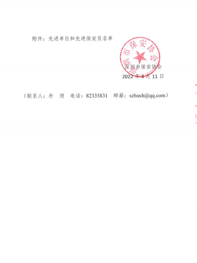 榮獲2017-2023年度深圳市公安局優(yōu)秀保安公司,深圳市保安協(xié)會(huì)常務(wù)理事單位(十大常務(wù)理事單位之一)