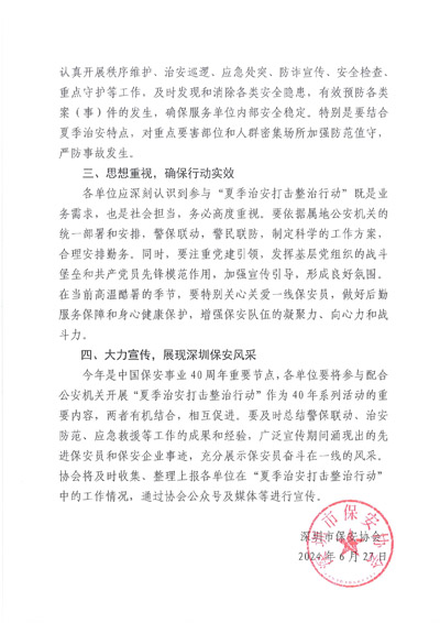 深圳保安協會發布關于積極配合公安機關夏季治安打擊整治行動倡議書。