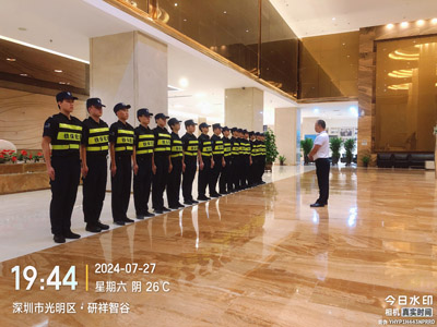 我司鐵保宏泰深圳保安公司駐深圳市光明區(qū)研祥智谷園區(qū)安保護(hù)衛(wèi)日常隊伍整理。