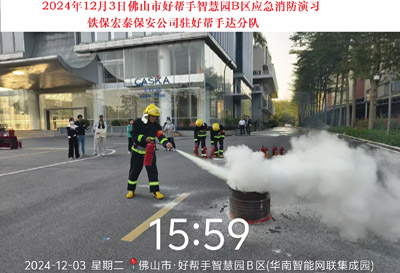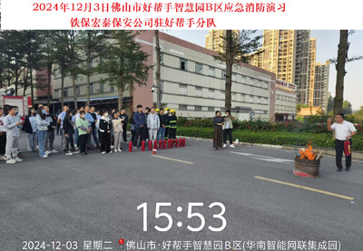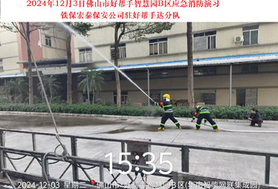 2024年12月3日我司鐵保宏泰深圳保安公司駐佛山市好幫手智慧園分隊在園區B區進行應急消防演習。