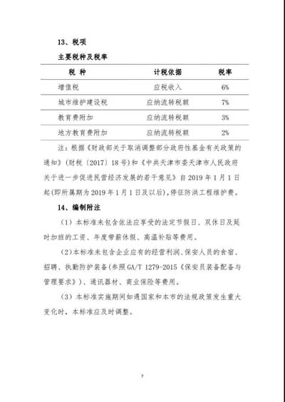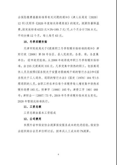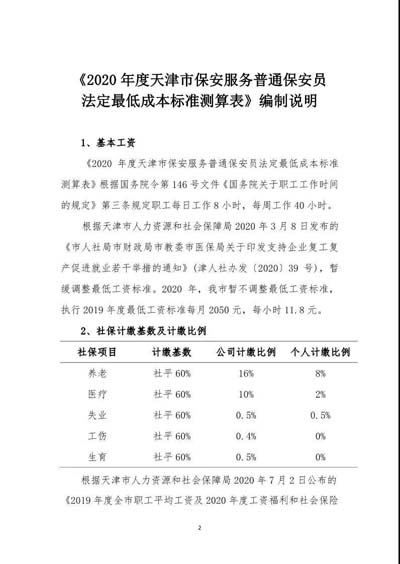 天津市保安協會發布《2020年度天津市保安服務普通保安員法定最低成本標準測算表》及編制說明。