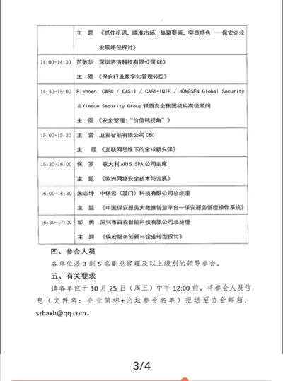 請(qǐng)各單位于10月25日(周五)中午12:00前,將參會(huì)人員信息(文件名:企業(yè)簡稱+論壇參會(huì)名單)報(bào)送至協(xié)會(huì)郵箱: szbaxh@qq.com。