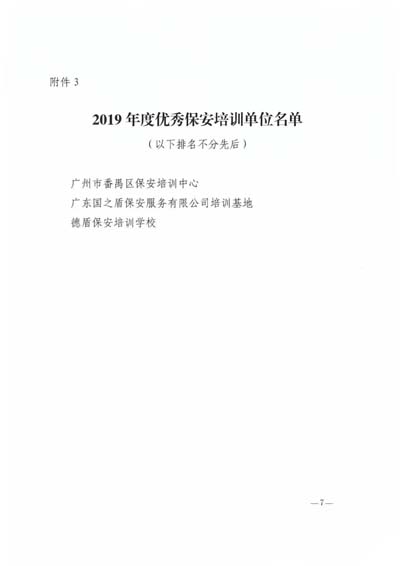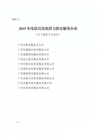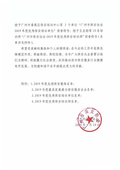 關于表彰2019年度先進保安集體、最發展潛力保安服務企業、優秀保安培訓單位及優秀保安培訓師的決定。