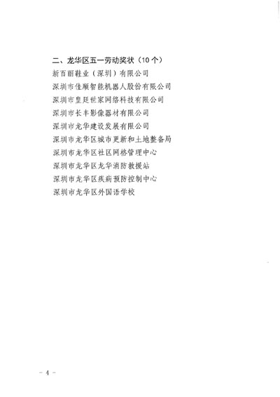 1. 2020年深圳市龍華區五一勞動獎章、獎狀獲獎名單。